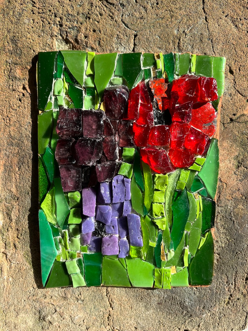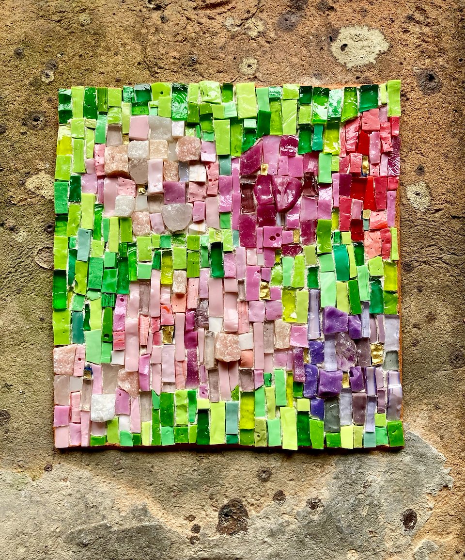 Mes mosaïques sont à regarder comme des fragments de paysages, elles parlent de nature, de lumière et de couleurs.